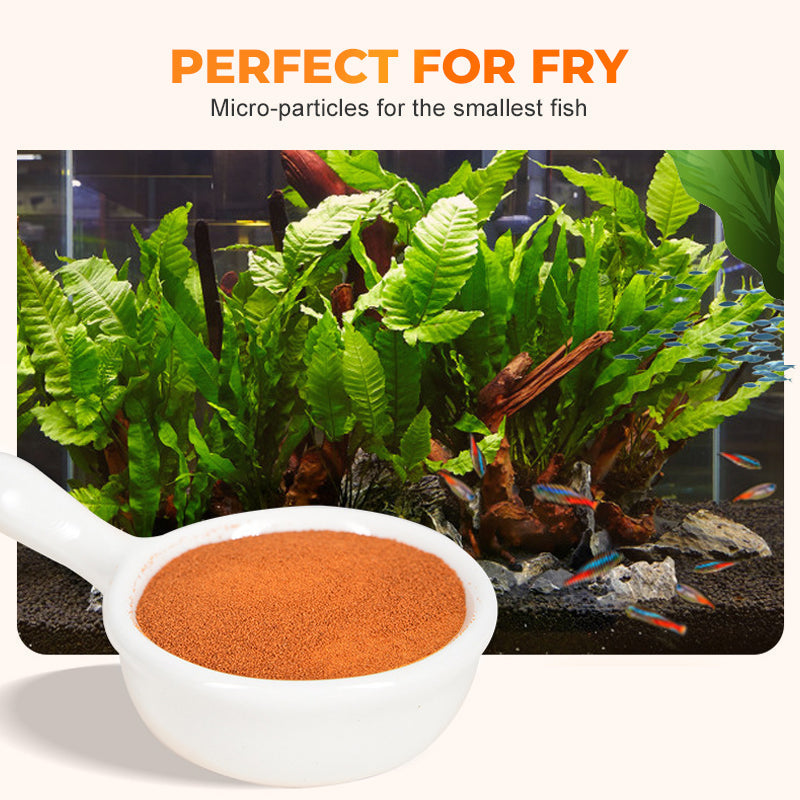 MICRO-PARTICLE SIZE: Perfectly sized for small fish, fry, and invertebrates. The tiny granules are easy for even the smallest mouths to consume, ensuring all your aquatic pets receive proper, easily digestible nutrition.